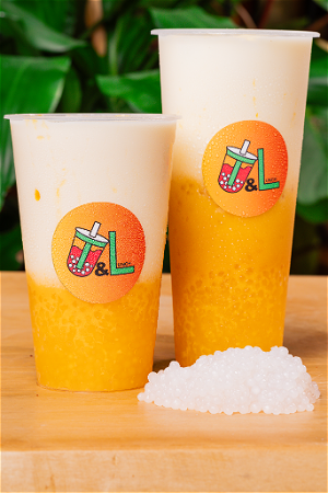 Een romig drankje van mango en een hint van kokos met sago balletjes.